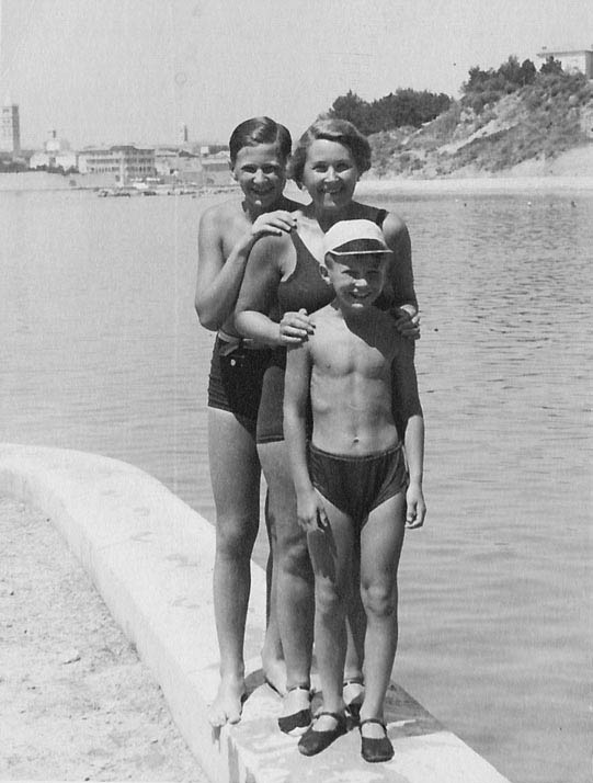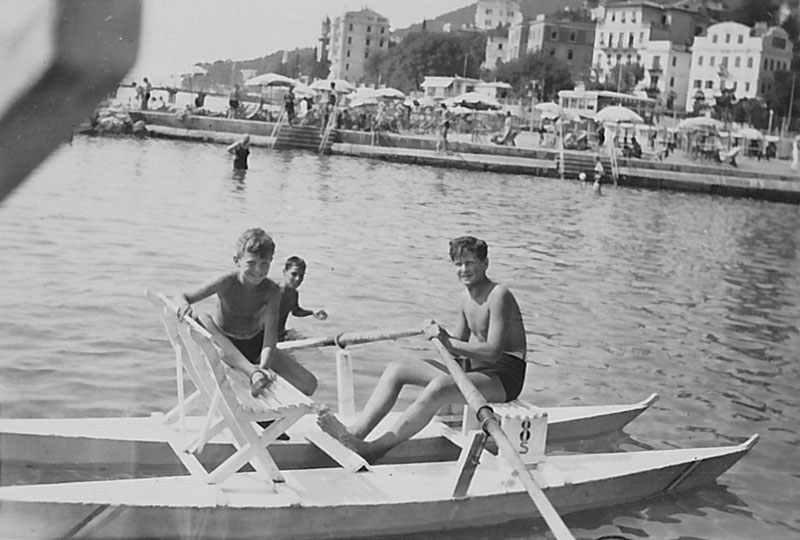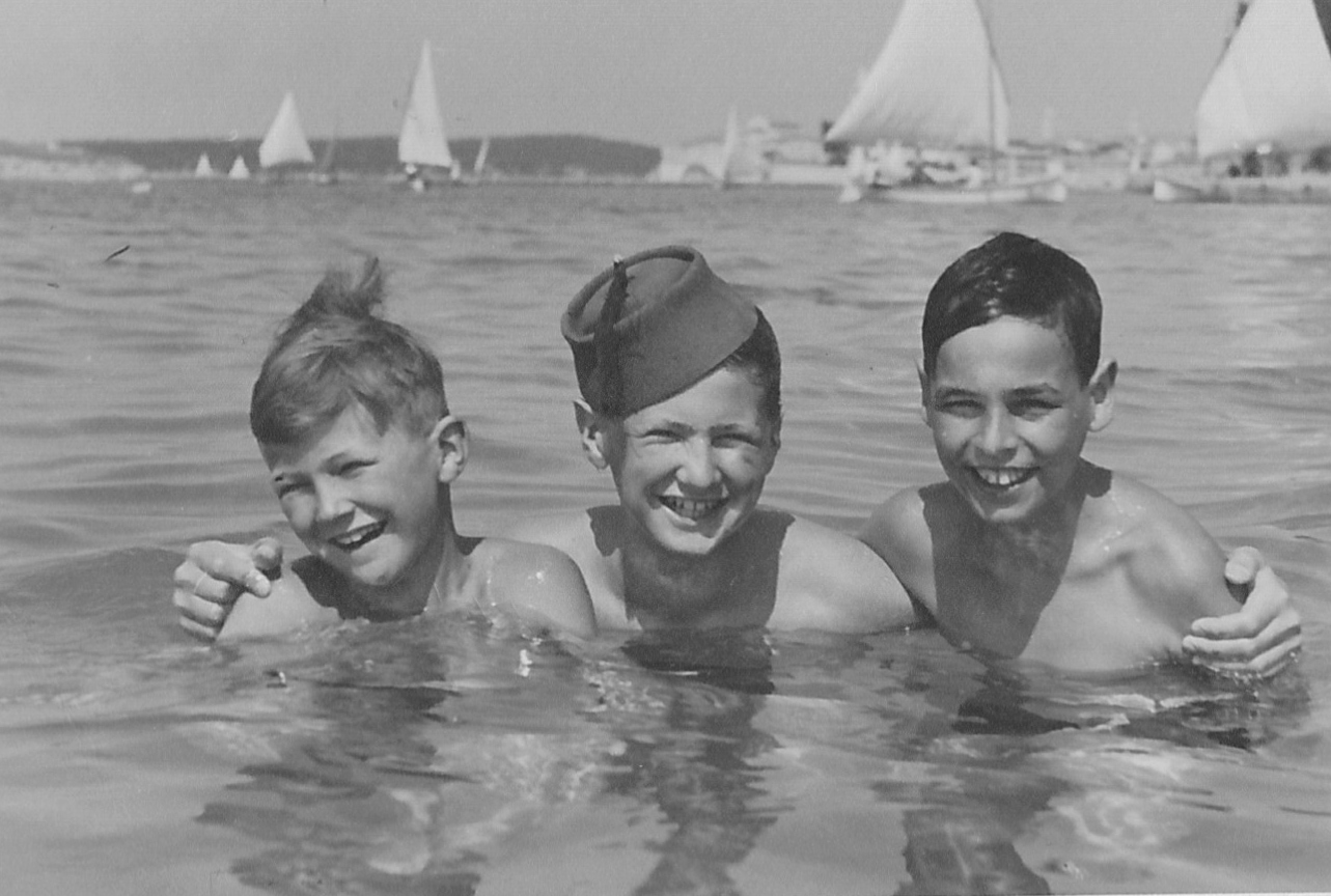 On holiday in Rab, Yugoslavia, Tomy (c) with Sasha (l) and friend Harry Werner, 1938